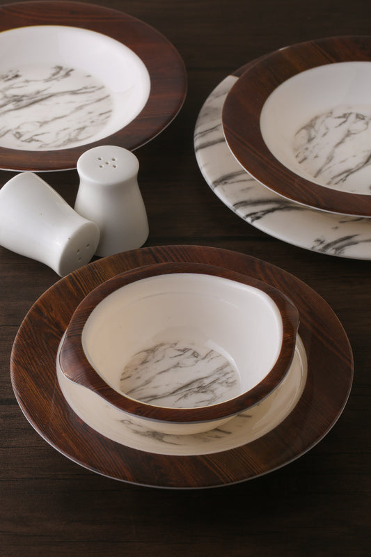 Marble & Wood Dinnerware Set | 12 Pcs